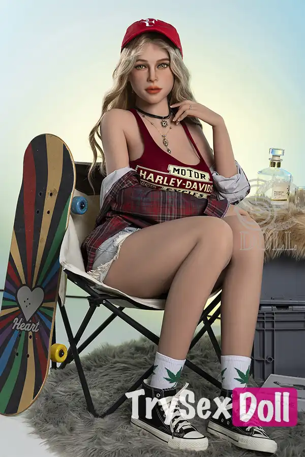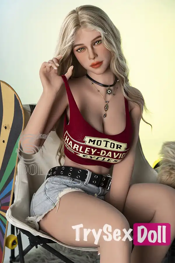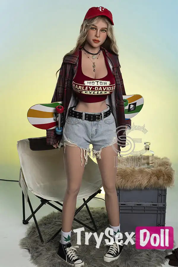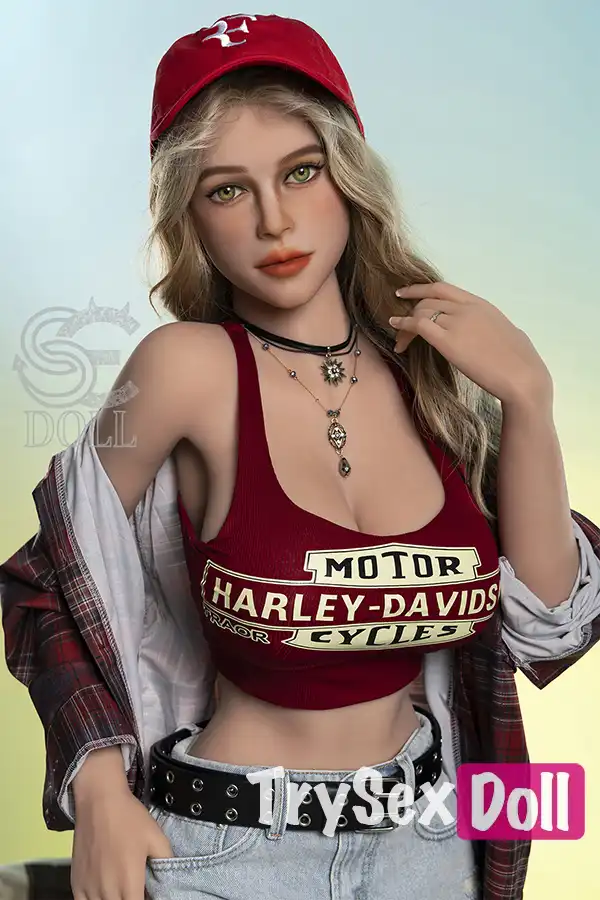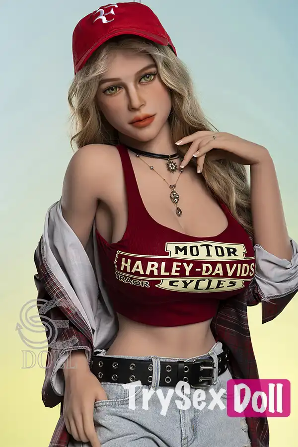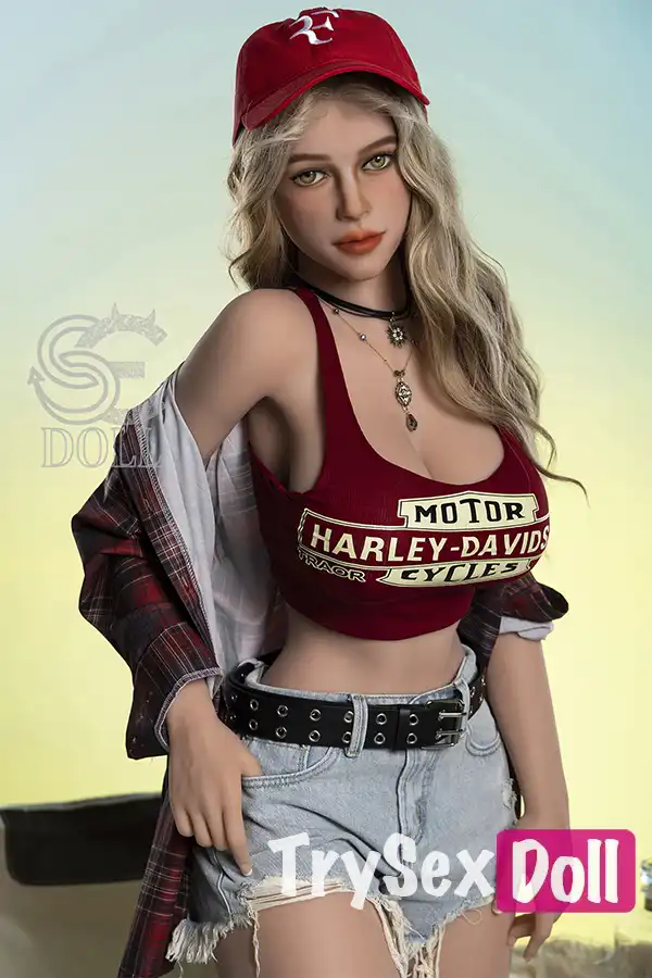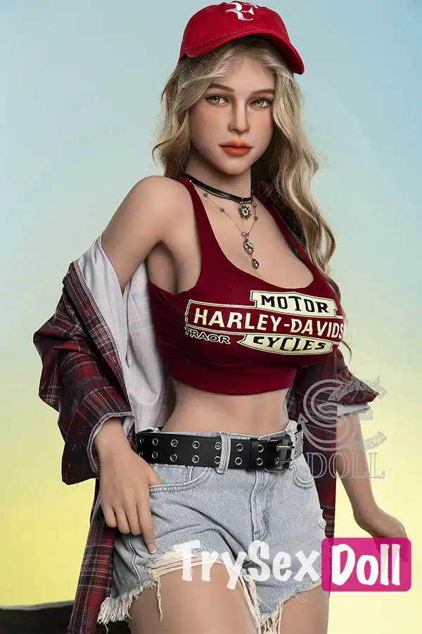 161cm 5ft3 Curly Hair Plaid Shirt Sex Dolls Blonde Busty Sexy Dolls F Cup