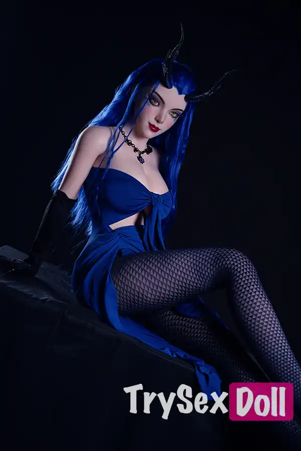 164cm 5ft4 Silicone Blue Hair Chubby Breasts Sex Doll