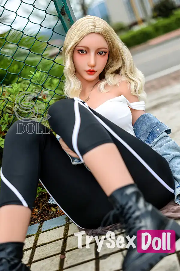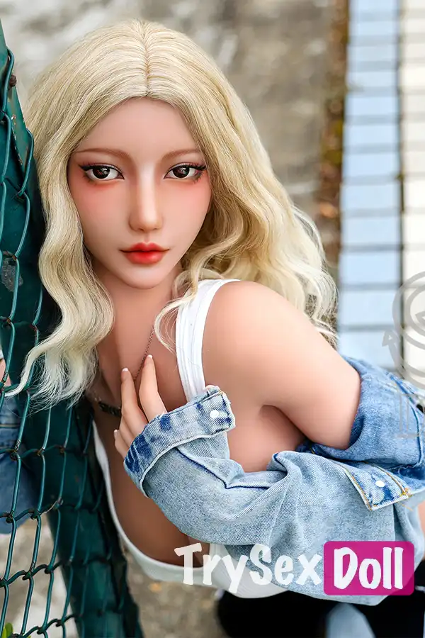 161cm 5ft3 Curly Hair Plaid Shirt Sex Dolls Blonde Busty Sexy Dolls F Cup